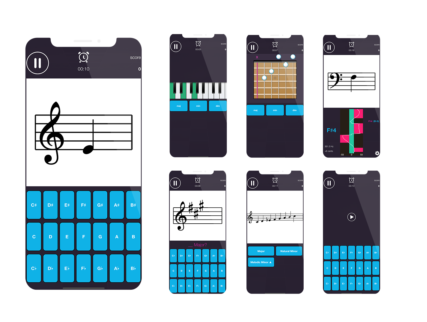 Are you staying at home and looking for ways to spend your time more productively? ChordIQ is the perfect option. It will help you develop your music skills with dozens of training games. Staff games help you to learn notes, note values, key signatures, and intervals, along with scales and chords. You will be able to remember chords and scales in different keys. Use ear-training games to practice notes, intervals, and chords. You can also practice singing or playing notes using your guitar, piano, saxophone, violin, or any other instrument. Try ChordIQ today! It has already helped thousands of users achieve their musical goals.